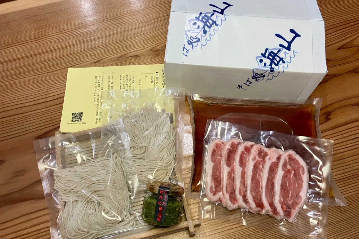 - そば160g×2、そば出汁750㏄×1、国産合鴨100g×1、柚子胡椒65g×1